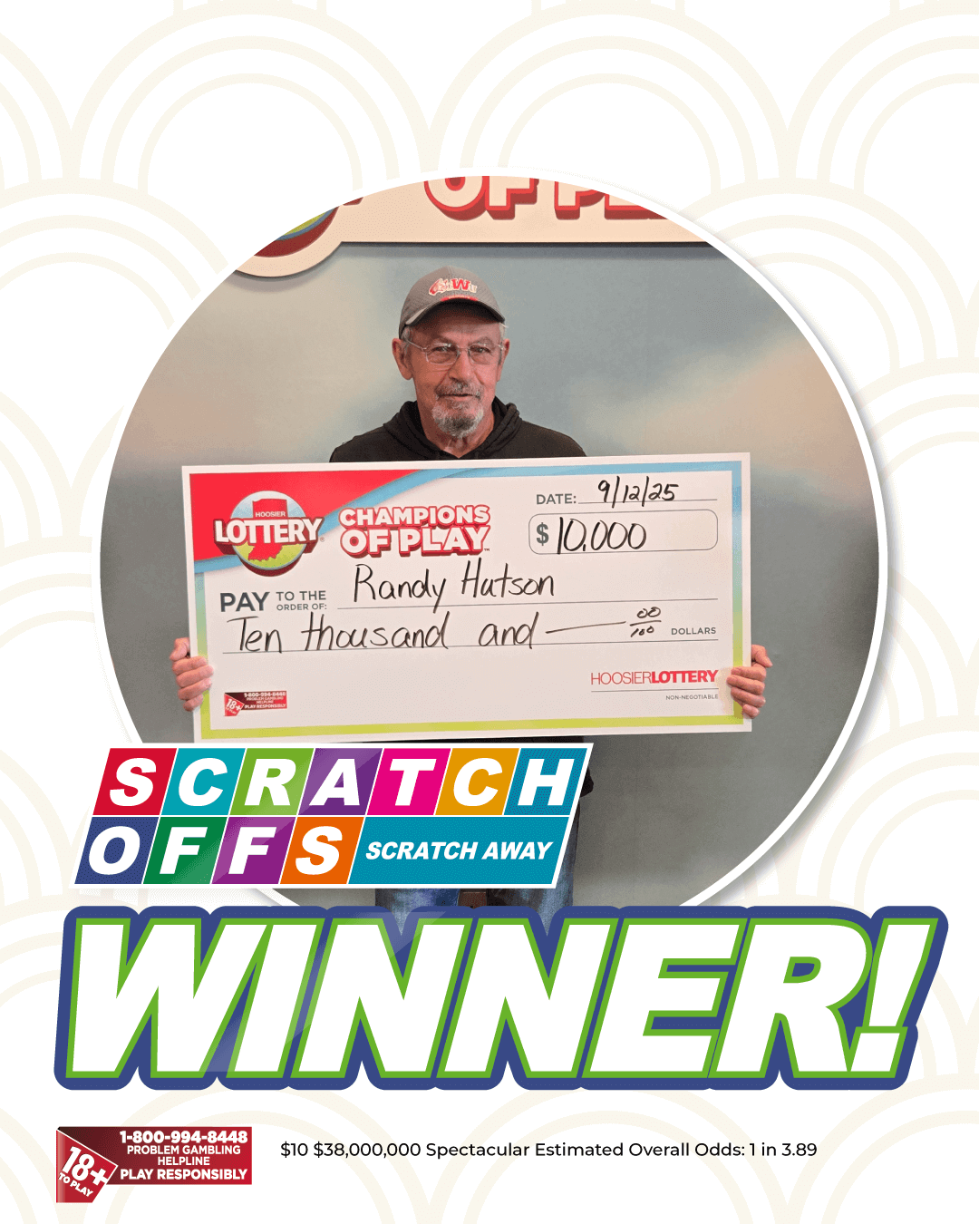 Randy scratched his ticket in the garage when he got home and revealed he’d won $10,000! “I couldn’t believe it,” he recalled about the moment he won. With a trembling voice, he asked his wife to look at the ticket and confirm what he had won. And for final confirmation, he scanned his ticket on the Hoosier Lottery app.