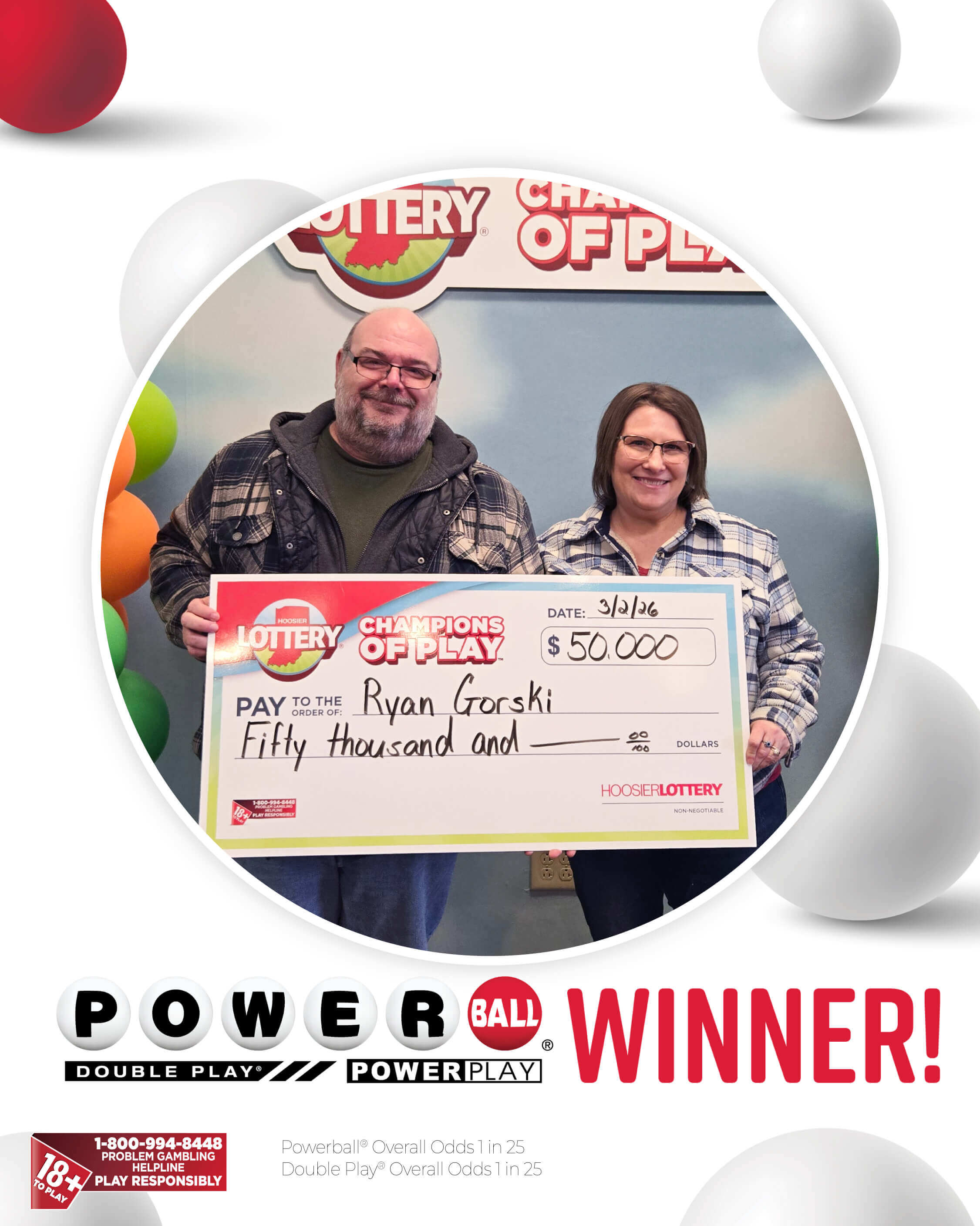 Ryan Gorski and his wife of 28 years had just gotten home after buying a new bass guitar for his wife to learn to play. While she strummed the new guitar, Ryan was busy transferring items from his old wallet to his new one when he stopped to scan a few Powerball® tickets he had on the table.