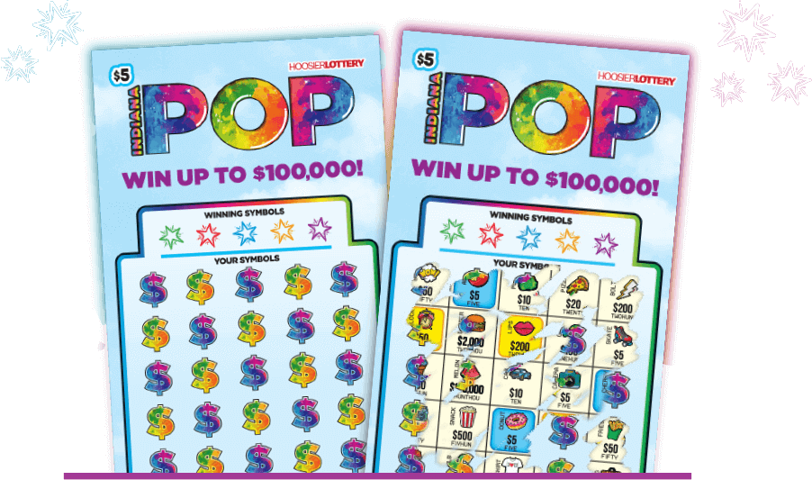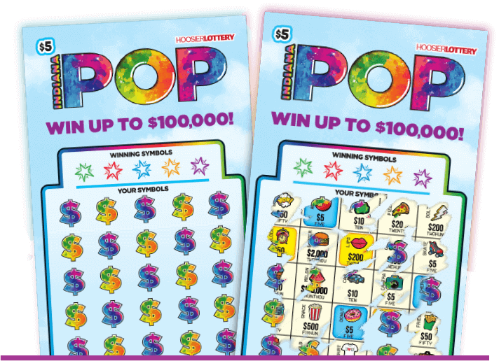Introducing the new $5 Indiana POP Scratch-off, a new colorful way to play, packed WITH prizes up to $100,000 and bursting with color just waiting to be revealed.