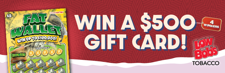 What: Customers who purchase a non-winning $5 Fat Wallet Scratch-off, from Low Bob's, may enter the second chance drawing for one of four prizes. Drawing conducted and prizes awarded by Low Bob's. Four prizes across entries for all stores.