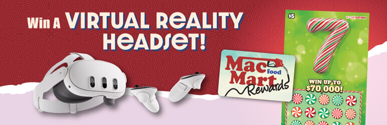 What: MacFood Mart loyalty customers who purchase a $5 Holiday 7's Scratch-off will be entered into a second chance drawing for one of two prizes. Drawing conducted and prizes awarded by MacFood Mart. Self-Service sales excluded. Two prizes across entries for all stores.