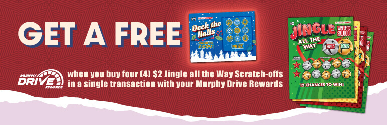 What: Murphy Drive Rewards members purchase four (4) $2 Jingle All the Way Scratch-offs, in a single transaction, receive one (1) free $1 Deck the Halls Scratch-off. While supplies last.