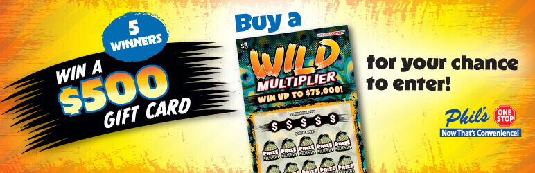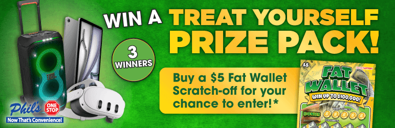 What: Customers who purchase a non-winning $5 Fat Wallet Scratch-off, from Phil's One Stop, may enter the second chance drawing for one of three prizes. Drawing conducted and prizes awarded by Phil's One Stop. Three prizes awarded from entries from all stores.